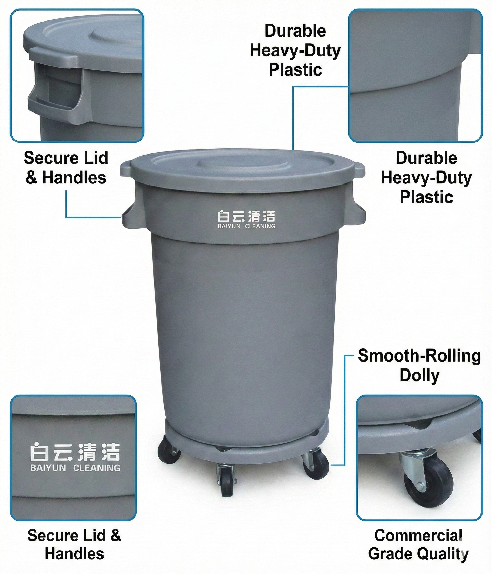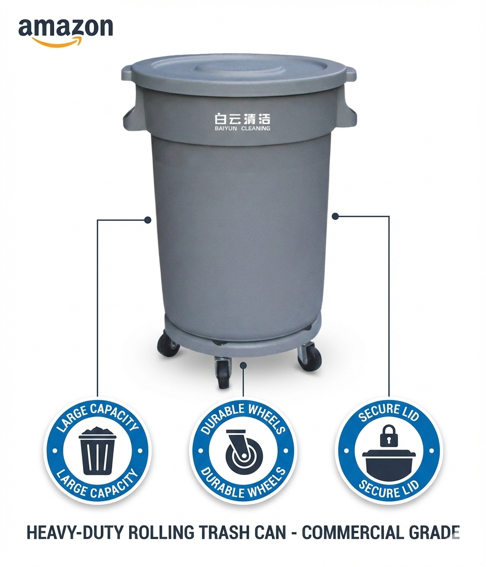 Garbage Can Circular with Dolly 80LT - Baiyun - Made in China